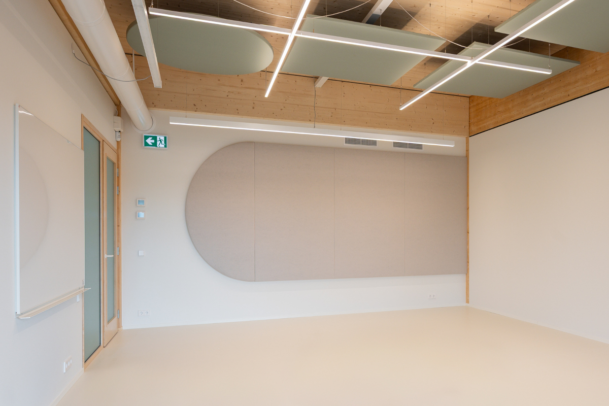 Meillä oli suuri kunnia olla mukana uuden Raadin koulutus- ja yhteisökeskuksen sisustuksessa akustiikkaratkaisuillamme. Asensimme neliön- ja ympyränmuotoisia kattopaneeleita, joiden halkaisija on 1600 mm. Niiden eloisat värit ja leikkisät muodot luovat iloisen ja inspiroivan tunnelman ja sulautuvat kauniisti tilojen yleiseen värimaailmaan.
